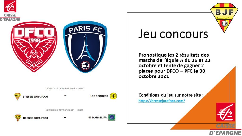 Les pronostics sont à envoyer en message privé sur la page Facebook de BRESSE JURA FOOT en communiquant votre nom-prénom + la catégorie auquel vous appartenez et les 2 résultats.