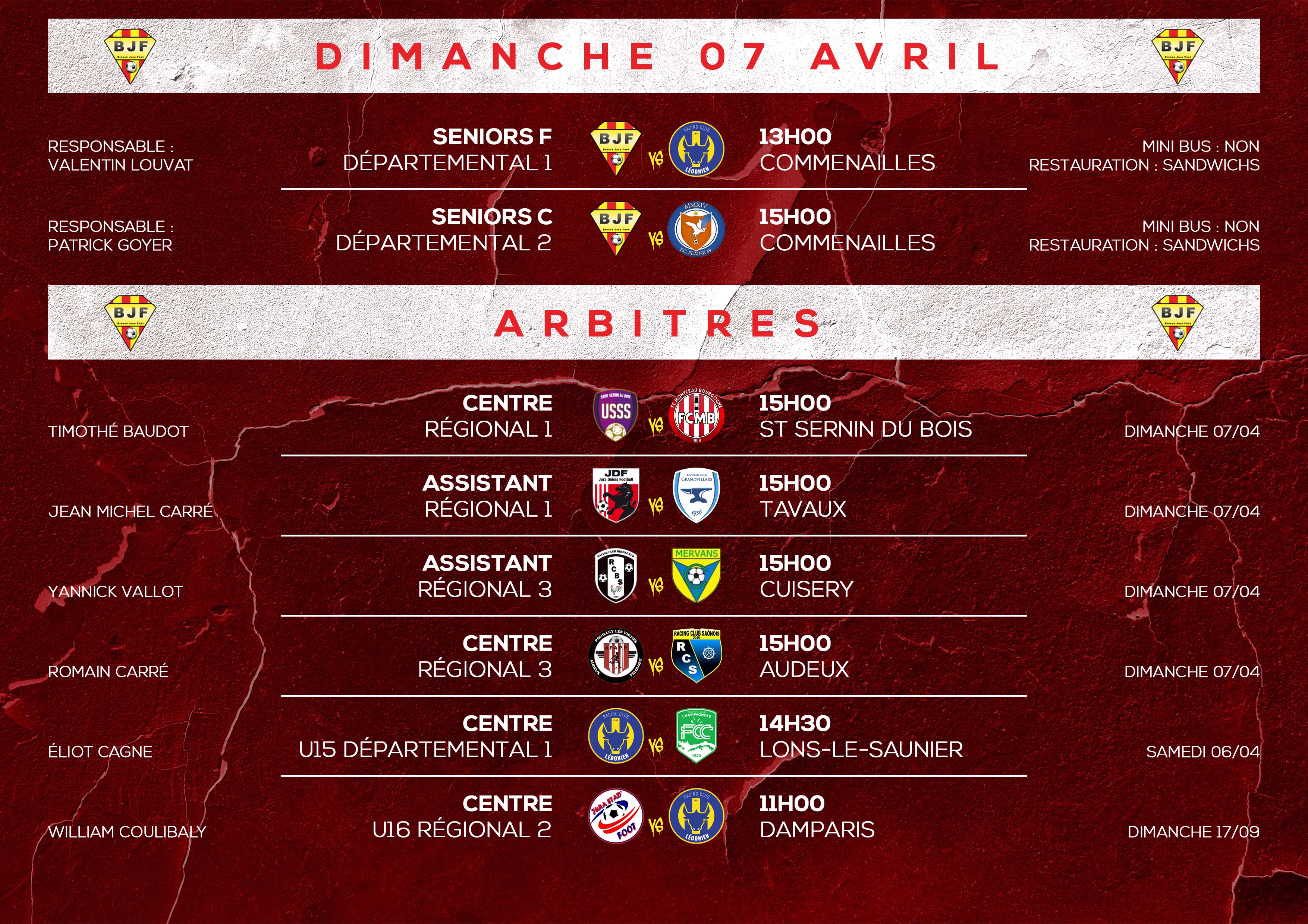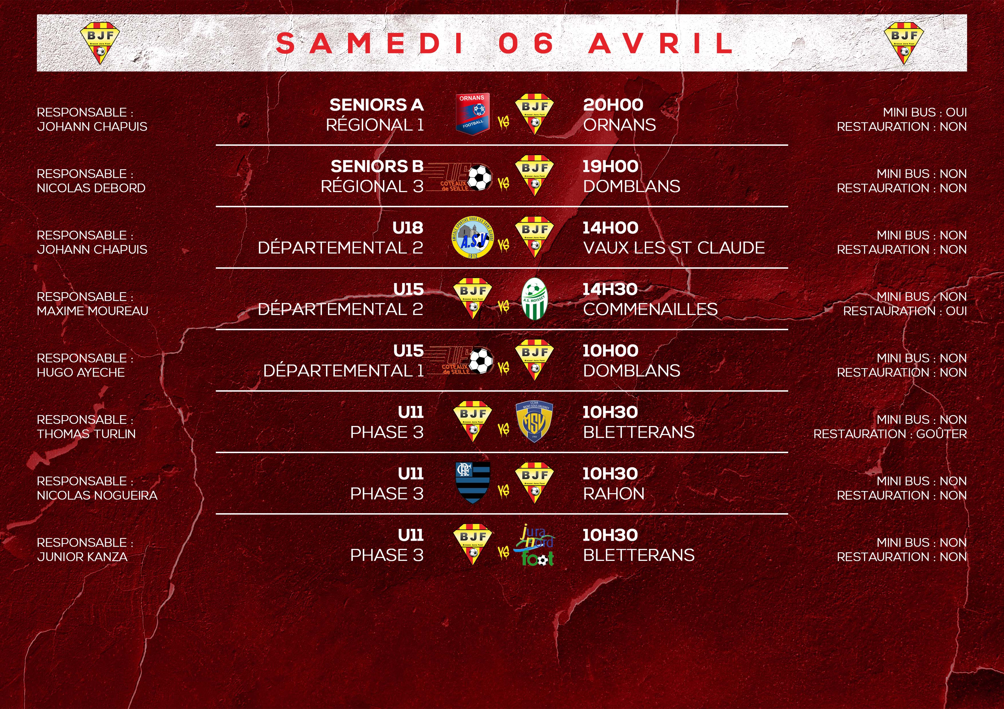 Le programme du week-end (06 et 07 avril) 05 Avr 2024Uncategorized Retrouvez le programme des matchs de vos équipes ce week-end.