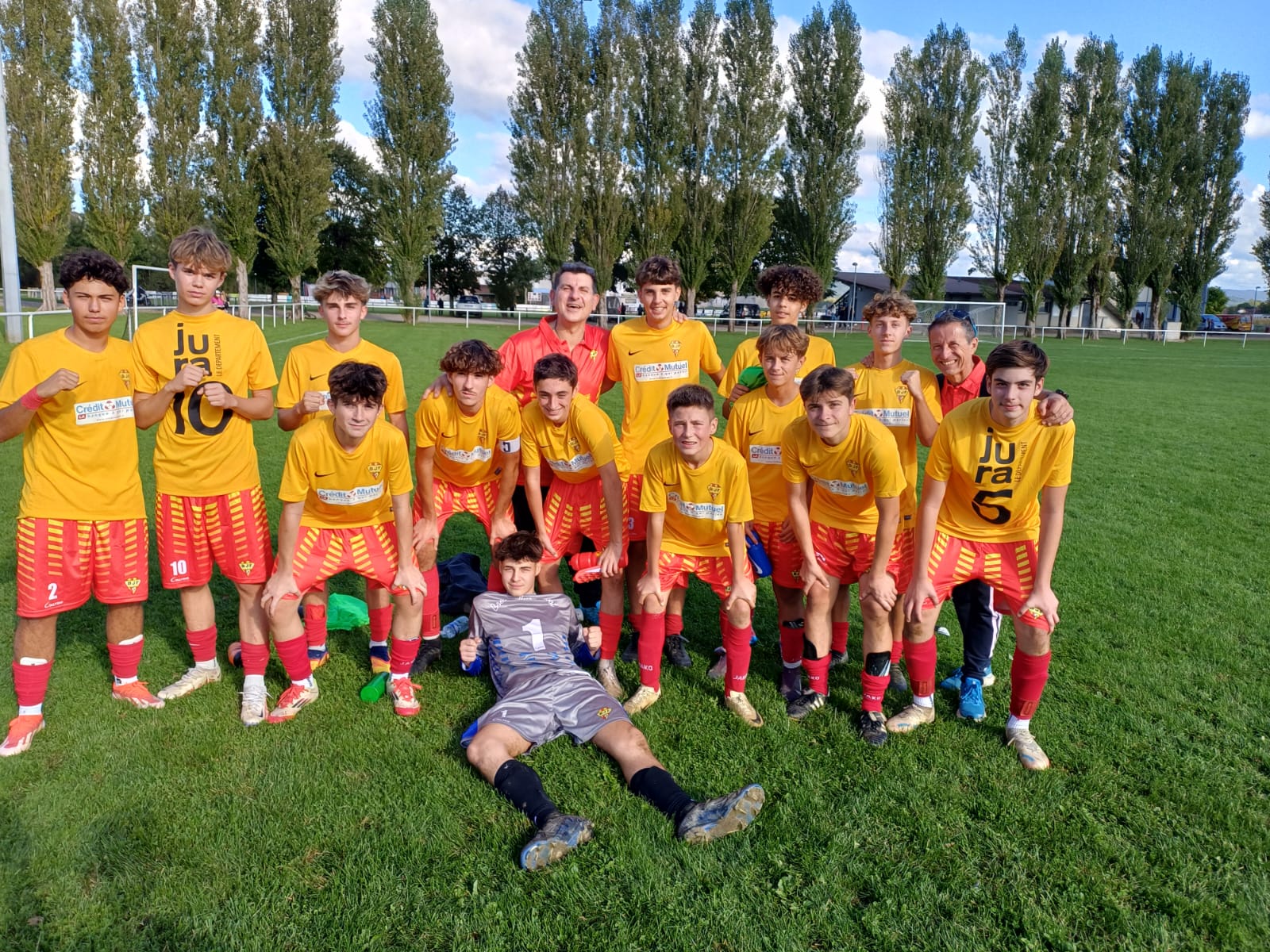 Enzo HUOT-MARCHAND : « Défaite 19-0 face à une belle équipe de la joux nozeroy. Une équipe de la joux qui descend de D1 suite à une erreur du district. Concernant le match, je suis très fier de mes joueurs qui n’ont rien lâché malgré le score. Un très bel état d’esprit, même si nous avons de la frustration car le score est lourd au vu de ce qu’on a proposé. Nos jaunes ont respecté les consignes qui ont été données, même si tout n’est pas parfait. Il y a encore quelques paramètres à travailler du point de vue tactique, mais c’est encourageant pour la suite. Ne rien lâcher, bien travailler à l’entraînement et les résultats viendront !Point jonglage acquis avec 694 jonglages ✅💪🏻 On souhaite un bon rétablissement à Tineo (entorse du coude), notre joueur venu dépanner en tant que gardien de but. Merci à lui pour avoir fait une excellente prestation dans les buts. Bon courage ! »
