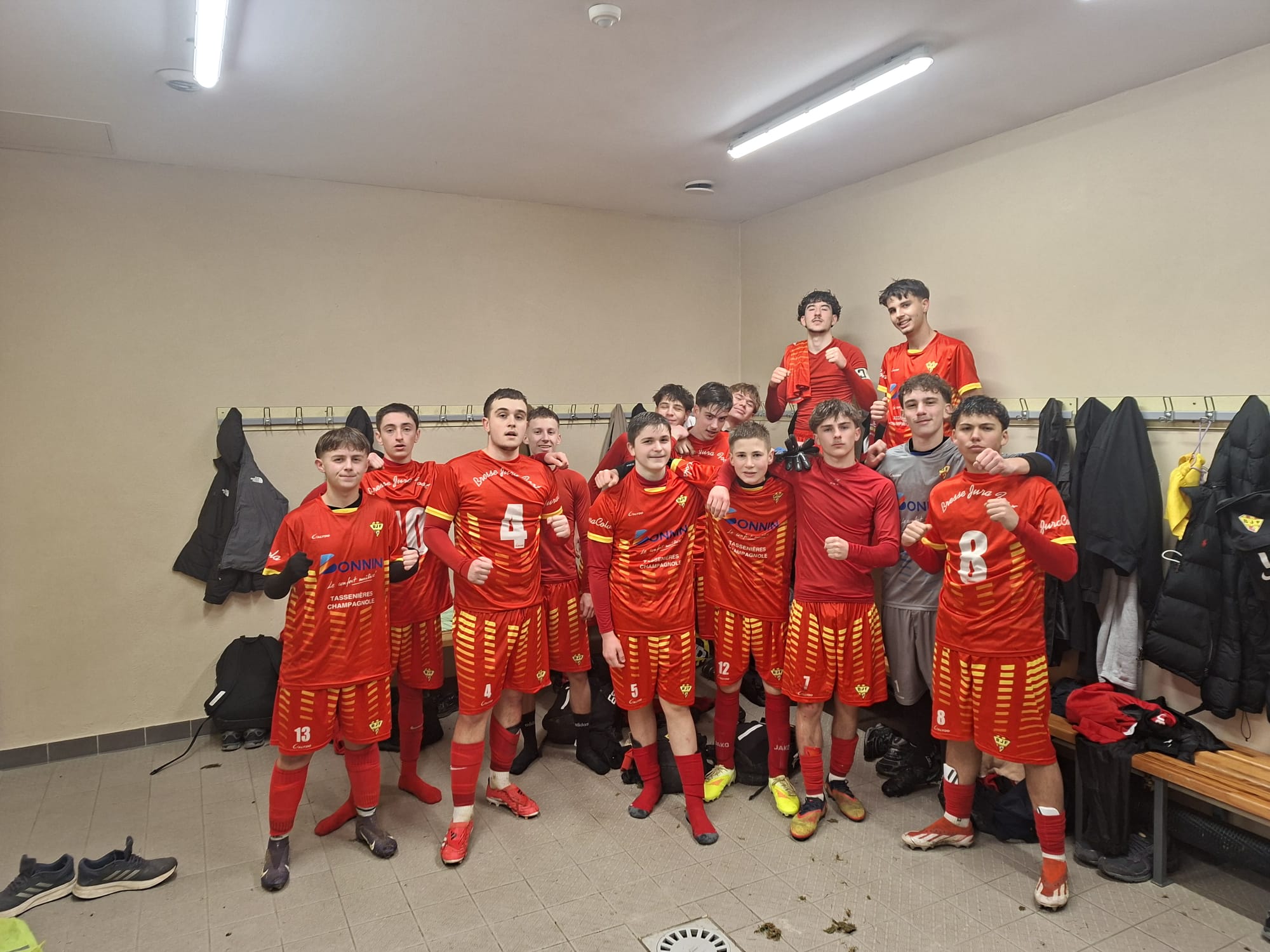 Jean-Yves LAGUT : « Un match avec une équipe remaniée qui a répondu présent… Dans la continuité de la saison cette équipe est très plaisante à voir jouer et nous montre tout son caractère avec 1 but d’avance à la pause, but de Maxence contre une belle équipe locale, dur à bouger… La deuxième fut plus dans une domination territoriale où nos adversaires n’ont jamais pu nous mettre en danger… Le score s’alourdit avec un but de Jules puis de Timéo Orcier et un CSC. Le score n’est pas le principal, comme le coach adverse m’a signifié : « C’est un régal de vous voir jouer, pas un mot plus haut que l’autre, très belle équipe. » Merci à vous et à votre accueil, merci aux parents d’être présents et on se retrouve samedi à Bletterans contre les mêmes adversaires mais cette fois-ci en Coupe »