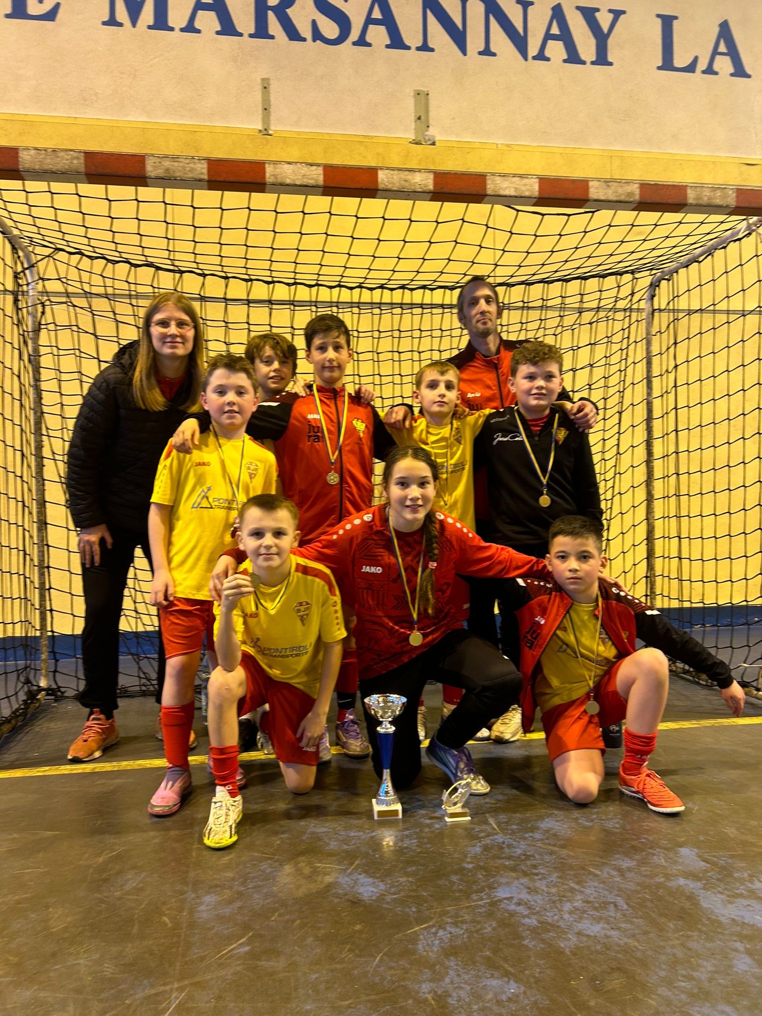 Place ensuite à la finale face à Fauvernay, que nous avions déjà rencontrés lors des phases de poule le matin. Une très belle finale, avec beaucoup d’envie des deux côtés. Nous encaissons un but rapidement, mais nos jaunes réagissent immédiatement en allant chercher l’adversaire plus haut. La réussite n’est malheureusement pas de notre côté : un poteau, une main non sifflée dans la surface… La frustration est immense, car vous méritez tellement au vu de tout l’investissement fourni à l’entraînement, en tournoi et en match. Mais le travail finira par payer, j’en suis convaincu.