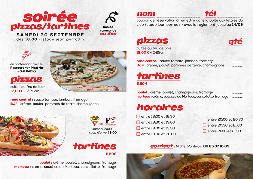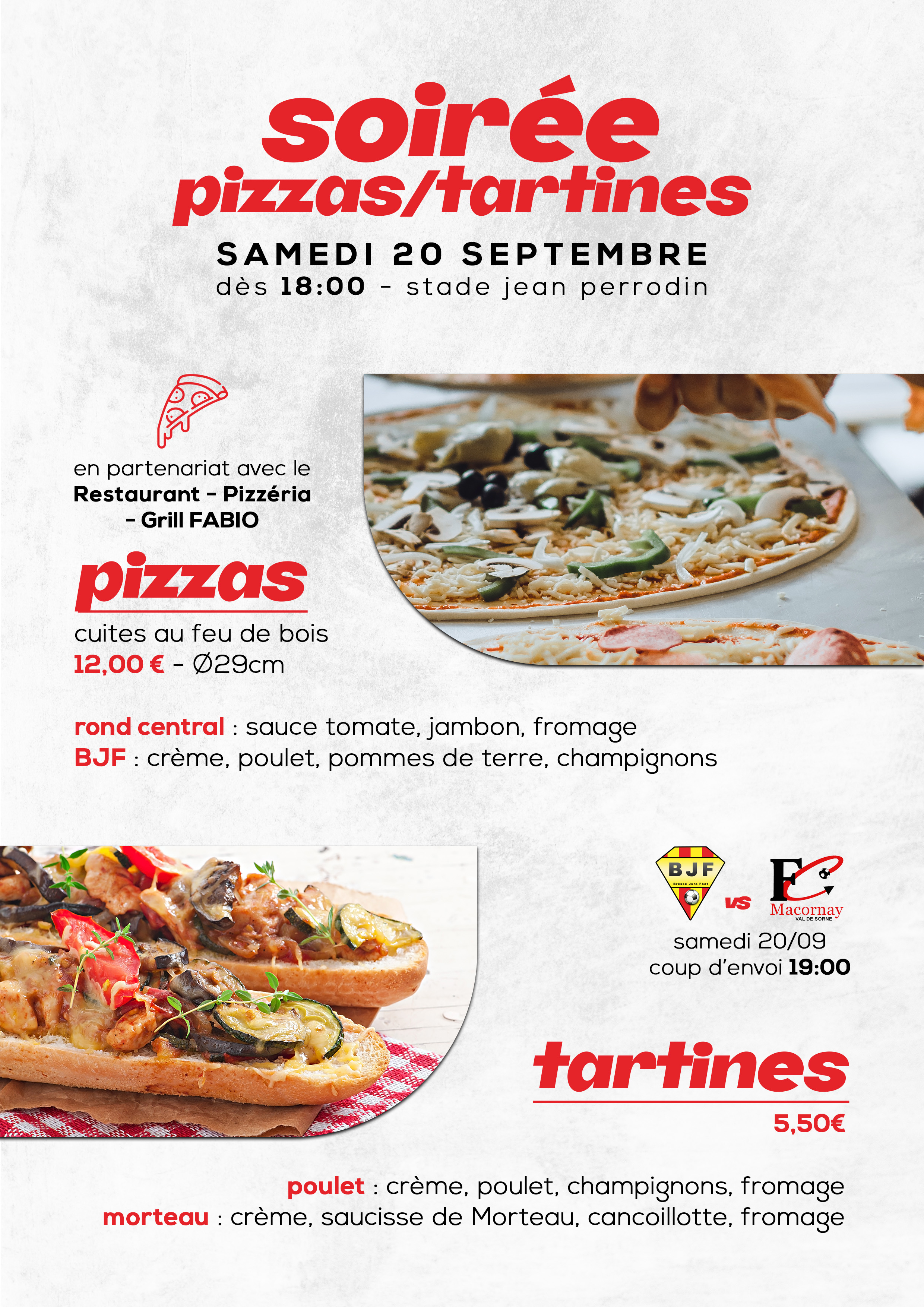 Soirée pizzas/tartines 27 Août 2025Uncategorized BJF organise une soirée pour le premier match de championnat à domicile !